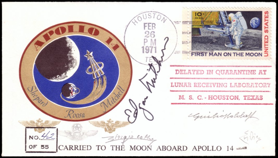 È una delle massime testimonianze della conquista della Luna ed è passata di mano da Il Ponte Casa d’Aste per la cifra record di € 24.000 (stima: € 10.000 – 15.000). La particolarità? Il Cosmogramma offerto la scorsa settimana all’incanto di Filatelia è uno dei 55 esemplari trasportati nello spazio da Edgar Mitchell durante la missione Apollo 14. Ma non solo: la busta presenta il francobollo celebrativo “First man on the Moon” – annullato a Houston alla fine del periodo di quarantena – ed è l’ultima a recare il timbro “Delayed in quarantine at / lunar receiving laboratory / M.S.C. – Houston Texas”.