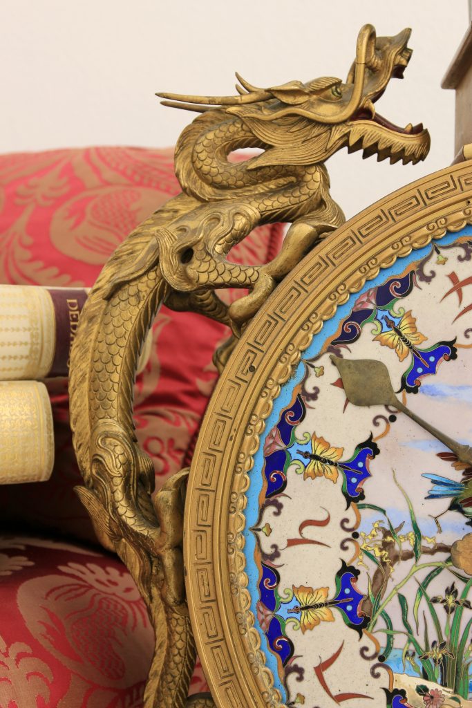 E così, tra le raffinate proposte che sfileranno all’asta di venerdì, citiamo innanzitutto una coppia di grandi vasi in porcellana Famiglia Rosa a fondo giallo, dinastia Qing (sec. XIX) (lotto 1136, € 7.000-10.000), dalle grandi dimensioni (h. 93,5 cm), con colori vivaci, ornamenti floreali e una fitta simbologia riferita ai temi della fortuna e della felicità. Interessantissimo, poi, l’incontro tra cultura occidentale e orientale racchiuso nella pendola francese in stile “Japonisme” (lotto 1123, € 6.000-8.000), così come la preziosa placca decorata a smalti policromi (lotto 1105, € 14.000-15.000), contornata da una rara cornice in tartaruga, decorata sul retro e raffigurante gli Otto Immortali, un tòpos ricorrente dell’arte antica cinese. Una menzione speciale spetta poi alle giade (lotto 1029, € 20.000-25.000), il cosiddetto “oro cinese”, scolpite a mo’ di piccoli, particolareggiati oggetti arcaici, che si stagliano su due preziosi pannelli in lacca rossa cinabro.