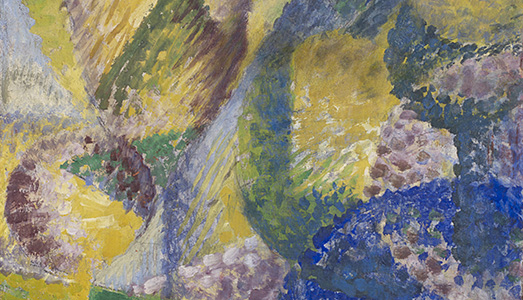 Era il 1916 quando Enrico Prampolini espose, alla Mostra Nazionale d’Arte tenutasi presso Palazzo Podestà-Luciardi a Sarzana, l’opera Sensazione cromatica di giardino, dipinta due anni prima e che mostra tutti i riferimenti del giovane Prampolini ai maestri del Futurismo.