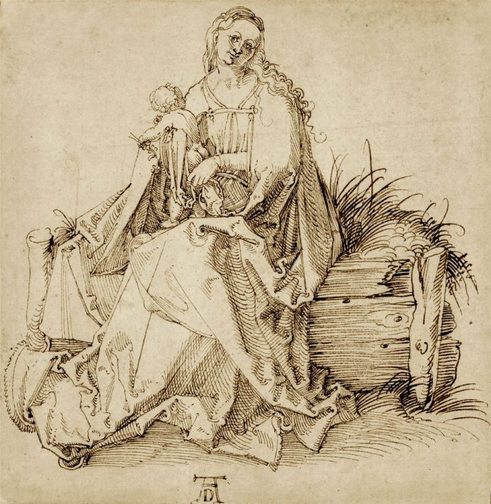 Un disegno inedito di Albrecht Dürer è stato scoperto e viene venduto dal gallerista londinese Agnews. Il disegno a Vergine con il Bambino è stata datata intorno al 1503. Agnews sostiene che si tratta di uno studio altamente finito per uno dei migliori acquerelli di Dürer, La Vergine con animali (1506), ora all’Albertina di Vienna. In particolare, i panneggi nelle due opere sono simili. Christof Metzger, che ha curato la mostra dell’Albertina dedicata a Dürer (che ha chiuso a gennaio), ha confermato l’attribuzione dell’opera di Agnews, che presenta in basso l’autentico monogramma “AD”.