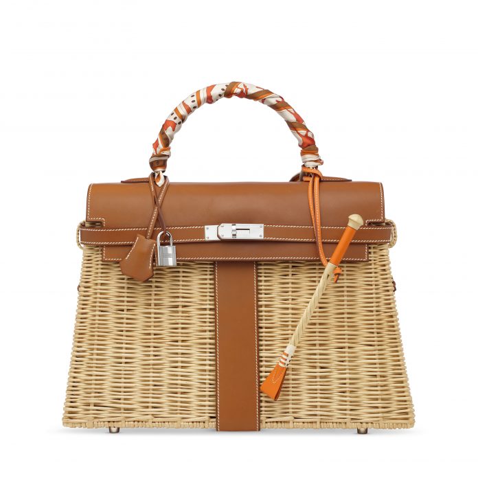 Uno sguardo alla nuova asta di Christie’s Milano. C’è una Flag Birkin 35 del 2014 tra i top lot del catalogo, tra gli esemplari più sportivi del marchio, con una riconoscibile combinazione di strisce in Barénia-leather, rosse e arancio (stima: 6.000-8.000 euro); c’è una Birkin Shadow 40 in denim e pelle nera – il modello introdotto dallo stilista francese Jean Paul Gaultier, personalizzato da Petit H in collaborazione con il collezionista (stima: 10.000-12.000 euro); e non poteva mancare una selezione di coloratissime Sac à Malice, le esuberanti handbags prodotte dalla fine degli anni ’80 che rappresentano, giocose, vere opere da indossare. Ancora, riflettori puntati sul vimini della serie Picnic, che include una Kelly 35 in Osier (stima: 18.000-24.000 euro), una Picnic Farming Bag (stima: 4.000-6.000 euro) e una Picnic Garden Party (stima: 3.000-4.000 euro). Gli iconici foulard in seta? Ovviamente presenti, tenete d’occhio il modello x Colette J‘aime mon carré e la capsule Hermès x Comme des Garçons.
