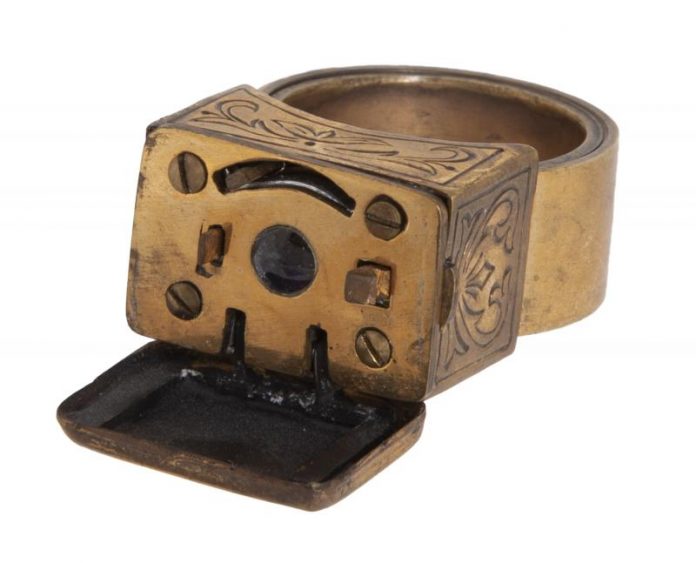 Troviamo centinaia di cimeli da spia all’incanto di Julien’s Auctions, la stessa casa d’aste che, nel 2016, aveva messo in vendita il vestito di “Happy Birthday Mr. President” di Marilyn Monroe. Si tratta, stavolta, di oggetti entrati nell’immaginario comune – quasi stereotipi da cinema – custoditi fino ad oggi nella ricchissima collezione del KGB: telecamere nascoste in un pacchetto di Marlboro (stima: $800-$1.200), mimetizzate dentro una borsa ricercata (stima: $2,000-$3,000), create a mo’ di anello (stima: $6.000-$8.000), a cui fanno eco decine di ricevitori, microfoni, capi d’abbigliamento alla James Bond. Alcuni “gadget” – comunicano dalla casa d’aste – non potranno essere messi in vendita nonostante l’annuncio iniziale, perché «in contrasto con le leggi sulle armi della California». Una pen gun progettata per sparare un proiettile e il rossetto bacio della morte, in effetti, non sembrano molto rassicuranti. Ma la scelta è tanta, così come il ventaglio di prezzi di partenza (qui l’e-catalogue completo). «Questi oggetti fuori dall’ordinario», conclude Darren Julien, «offrono uno sguardo affascinante sullo sconvolgimento geopolitico, economico e culturale di quel tempo, il cui impatto risuona più che mai in questo anno elettorale».