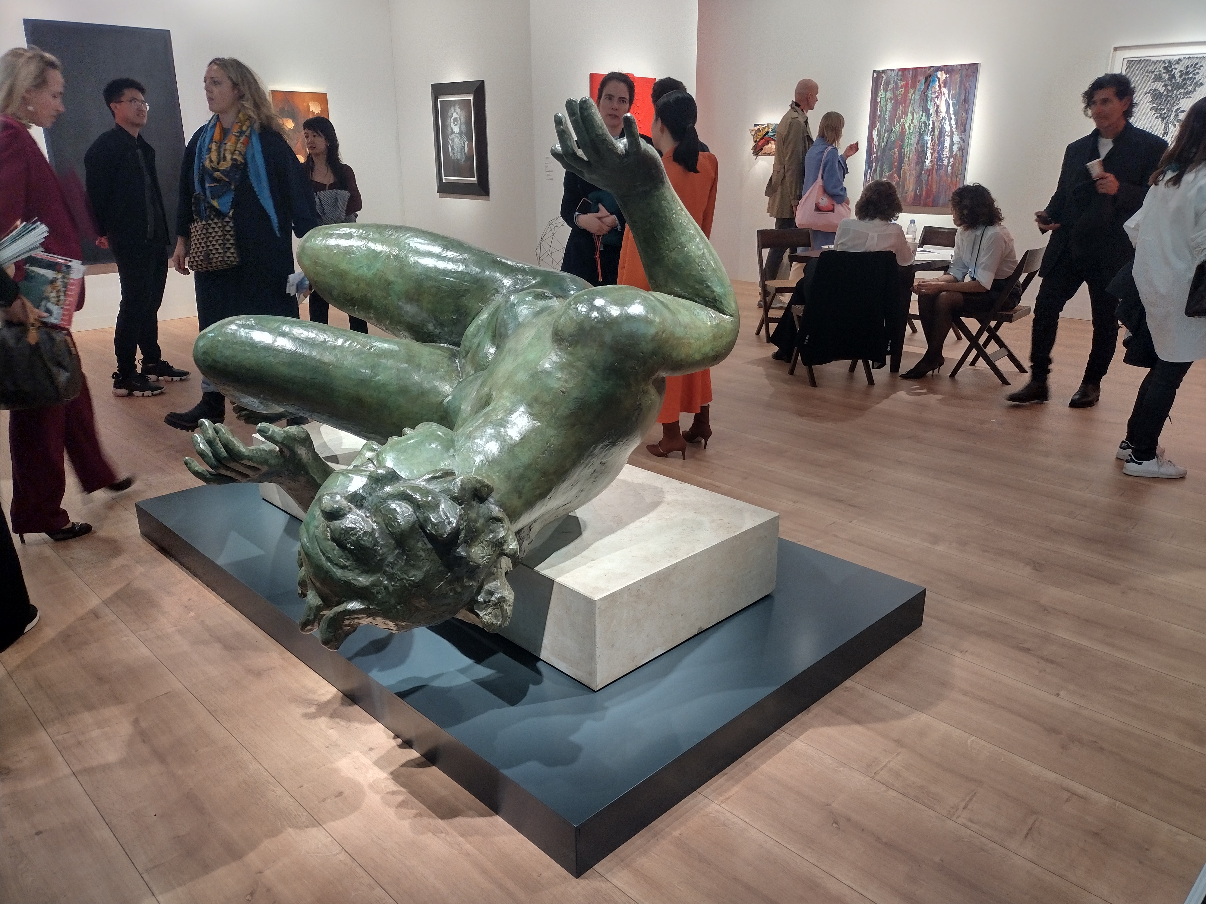 La Gagosian porta opere moderne e contemporanee di artisti della galleria, vedi alcune creazioni iconiche di Willem de Kooning, Gerhard Richter, Cy Twombly e Andy Warhol. La Selma Feriani è presente con i lavori di Massinissa Selmani, artista selezionato al Prix Duchamp 2023. La newyorchese Anton Kern Gallery propone una gran varietà di creazioni di Francis Upritchard, si tratta della sua prima personale nella capitale francese. Quest’artista neozelandese, che nel 2009 ha rappresentato il suo Paese alla Biennale d’arte di Venezia, guarda ai racconti popolari o alle mitologie folcloristiche, come in Strong Swimmer (2023), una scultura nuova di zecca realizzata con materiale di gomma naturale proveniente dall’Amazzonia del Brasile. Un materiale talmente difficile da lavorare che bisogna scolpire sott’acqua per mantenerlo flessibile. L’artista è nota per le sue figure allungate, vedi Pescatori. Una scultura che si ispira a un racconto popolare giapponese, che vede un uomo con braccia lunghe e gambe corte seduto sulle spalle di un altro con braccia corte e gambe lunghe che lavorano insieme per catturare i pesci. I suoi lavori vanno da 3mila a 175mila dollari.