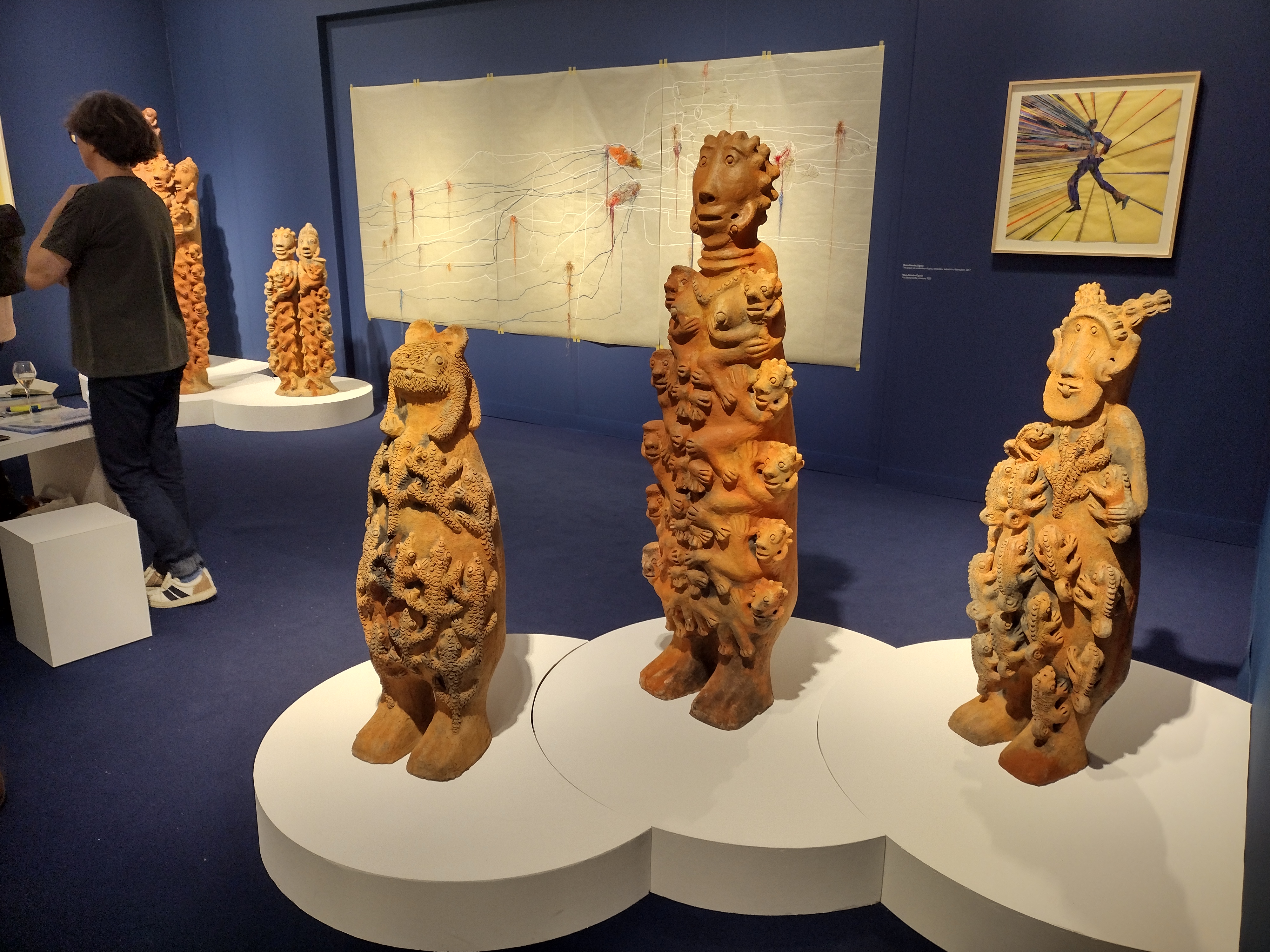 Diverse gallerie internazionali approdano per la prima volta alla fiera, come la Blum (Los Angeles, New York, Tokyo) con sculture, e dipinti dell’artista africano-americano autodidatta Lonnie Holley. Un solo show che dà l’opportunità di conoscere la pratica di quest’artista multimediale, qui con sculture coinvolgenti e narrative che vanno dai 15mila agli 80mila dollari, pitture che vanno dai 45mila ai 100mila dollari e opere su carta che stanno sui 10mila dollari. Musicista e poeta Lonnie Holley farà un concerto domani a Parigi.