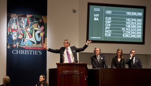 Al primo posto c’è Pablo Picasso, il cui dipinto dal titolo Les femmes d’Alger (Version ‘O’) ha venduto a 179 milioni di dollari, subito dietro il Nu couché di Amedeo Modigliani, passato di mano a 170 milioni. Al terzo gradino del podio troviamo la prima ed unica scultura della top ten, Alberto Giacometti, L’homme au doigt, con 141 milioni. Sembrano lontanissimi i giorni in cui il mondo era sotto shock per il risultato di Giacometti alla vendita del novembre 2014, in cui la sua Chariot fu venduta a 100 milioni.