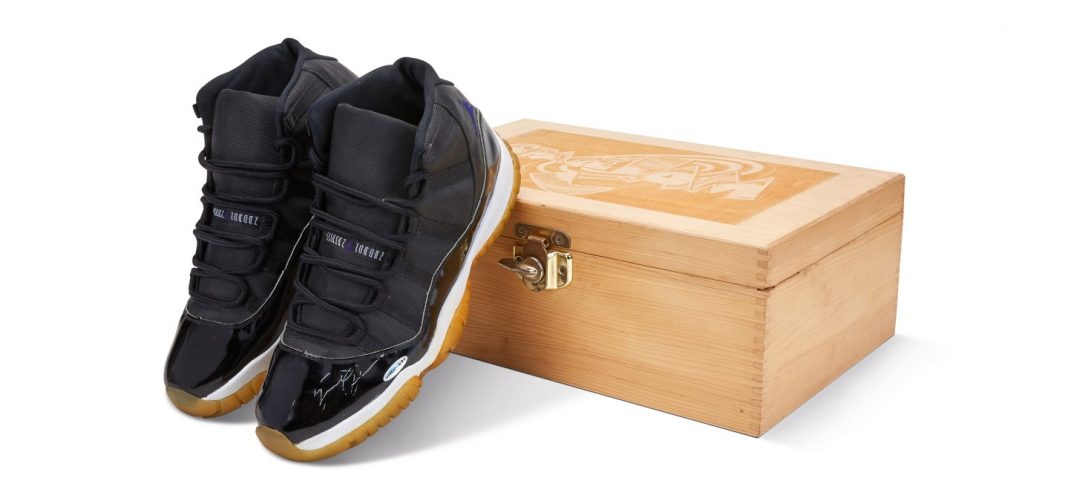 Vernice nera elegante, misura 13, firma in argento sulla scarpa sinistra, scatola personalizzata in legno e velluto. «Mai indossate», per di più, come specificava Sotheby’s nella presentazione pre-asta. «Il paio messo in vendita è un esemplare “Player Sample” o “Player Exclusive”, il che significa che è stato creato da Nike pensando a Mr. Jordan, alle sue caratteristiche». Il designer Tinker Hatfield, così, avrebbe progettato le “Space Jam” per impedire che la superstar dell’NBA potesse slogarsi una caviglia cambiando direzione in campo; seguendo le sue indicazioni, queste scarpe furono prodotte dalla fabbrica Feng Tay nel 1995 – e da lì diventarono leggenda.