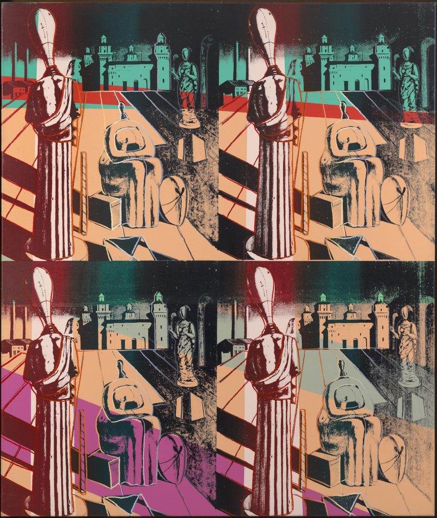 Sempre ben visibile da Robilant + Voena il mix esatto tra presente e passato: la sua selezione, da Frieze Masters, comprende opere di Giambattista Tiepolo, Anne-Louis Girodet, Joshua Reynolds, J.M.W. Turner, perfettamente in dialogo con Lucio Fontana, Enrico Castellani e Giorgio Morandi, Joan Miró e Andy Warhol, fino a giungere ai giorni nostri con opere contemporanee di Michelangelo Pistoletto, Damien Hirst e Lee Bae. Mentre da Mazzoleni, con sedi tra Londra e Torino, scopriamo un fitto dialogo tra Le muse inquietanti di Giorgio de Chirico (1959) e le Disquieting Muses (After de Chirico) del 1982 ad opera di Andy Warhol – un bell’emblema di quella influenza continua del passato sul presente, in una catena che non ha fine.