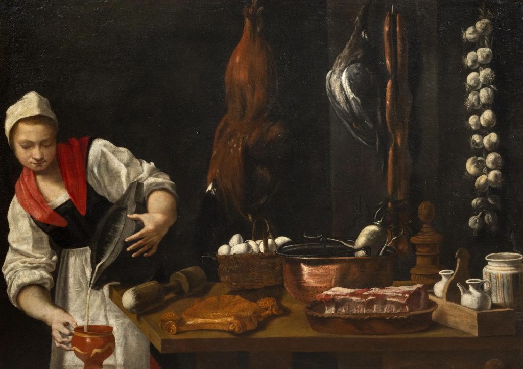 Andrea Commodi (Firenze, 1560 – 1638) ,GIOVANE DONNA IN CUCINA, olio su tela, cm 96×135. Stima € 8-12.000