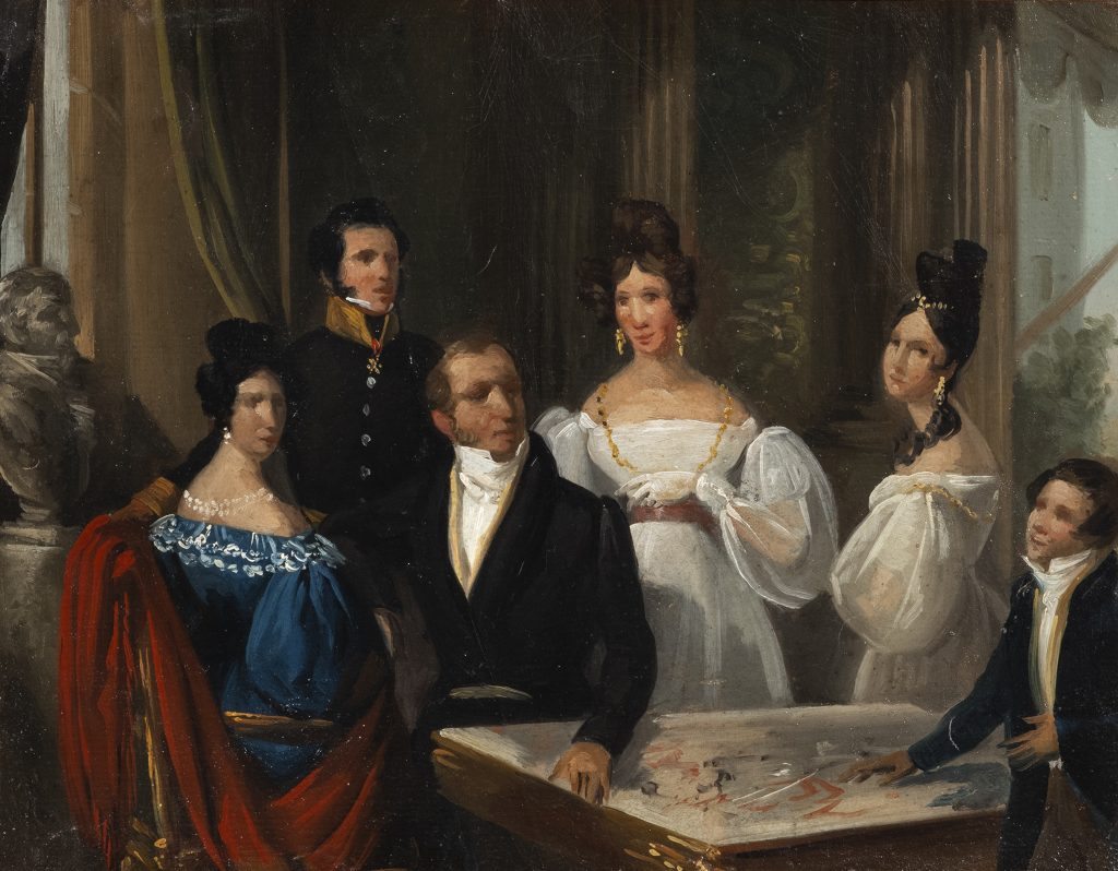 Giuseppe Bezzuoli (Firenze, 1784 – 1855), RITRATTO FAMIGLIA RUCELLAI, olio su carta, mm 320×255. Stima € 1.200 / 1.400