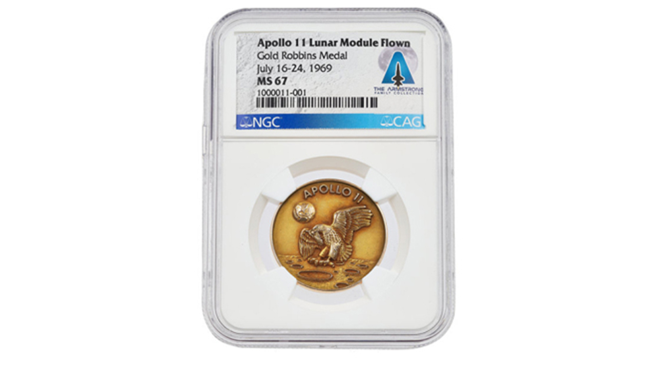 La vendita è iniziata martedì a Dallas e ha raccolto oltre 2,4 milioni, in gran parte attraverso la vendita della medaglia d’oro di Neil Armstrong, che è volata con lui sulla luna. Il pezzo in oro 14 carati è stato venduto per 2,05 milioni di dollari.