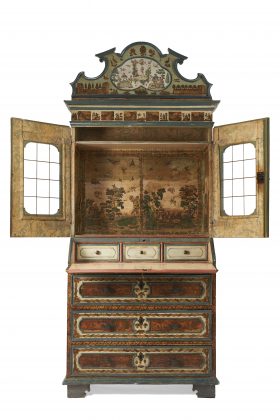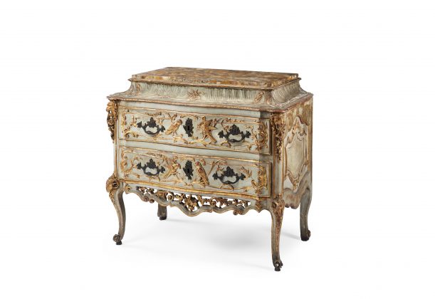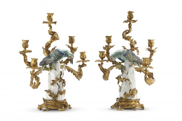 Chiudiamo in bellezza con una serie di mobili del XVIII secolo, come il trumeau piemontese con decori interni a chinoiserie (lotto 134, € 22.000 – 24.000) e l’elegante cassettone marchigiano con piano in breccia sagomato (lotto 144, € 22.000 – 24.000). Ma anche con la coppia di grandi mori reggi torcia veneti (lotto 78, € 6.500 – 7.000), l’arazzo Aubusson a Verdure con paesaggio fiabesco (lotto 65, € 5.000 – 6.000), gli eleganti candelabri in bronzo dorato con ghiandaie in porcellana della manifattura Meissen (lotto 142, € 10.000 – 12.000), il gruppo in porcellana Puttini con capra di Giuseppe Gricci (lotto 123, € 13.000 – 14.000) – testimonianza peraltro di uno dei primi lavori del maestro ceramista presso la Real Fabbrica di Capodimonte.