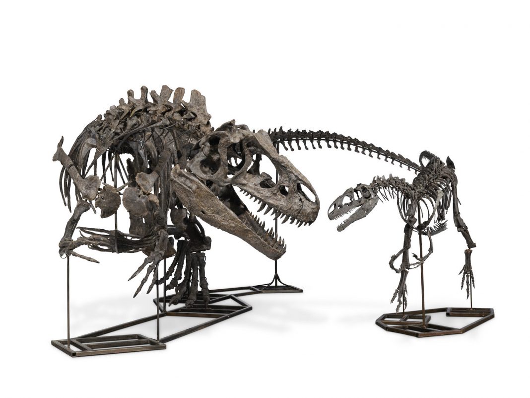 Sguardo allora ai nuovi – si fa per dire – lotti offerti da Christie’s. «La coppia di fossili di Allosaurus, che comprende lo scheletro di un giovane e di un adulto di Allosaurus», rivelano dalla major, «fornisce una meravigliosa panoramica dell’era Giurassica e potrebbe indicare raggruppamenti comunitari o familiari. Tali aggregazioni, e in particolare il fatto che questo giovane Allosaurus sia stato trovato così vicino a un adulto, potrebbero implicare strutture sociali simili a quelle osservate in alcuni predatori odierni».