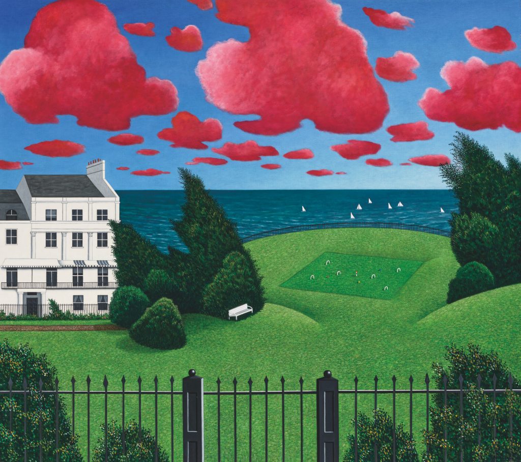 signed and dated ‘Scott Kahn ’92’ (lower right); signed, titled, inscribed and dated ‘CROQUET KAHN 1992 ©1992 by Scott Kahn all rights reserved’ (on the overlap)
