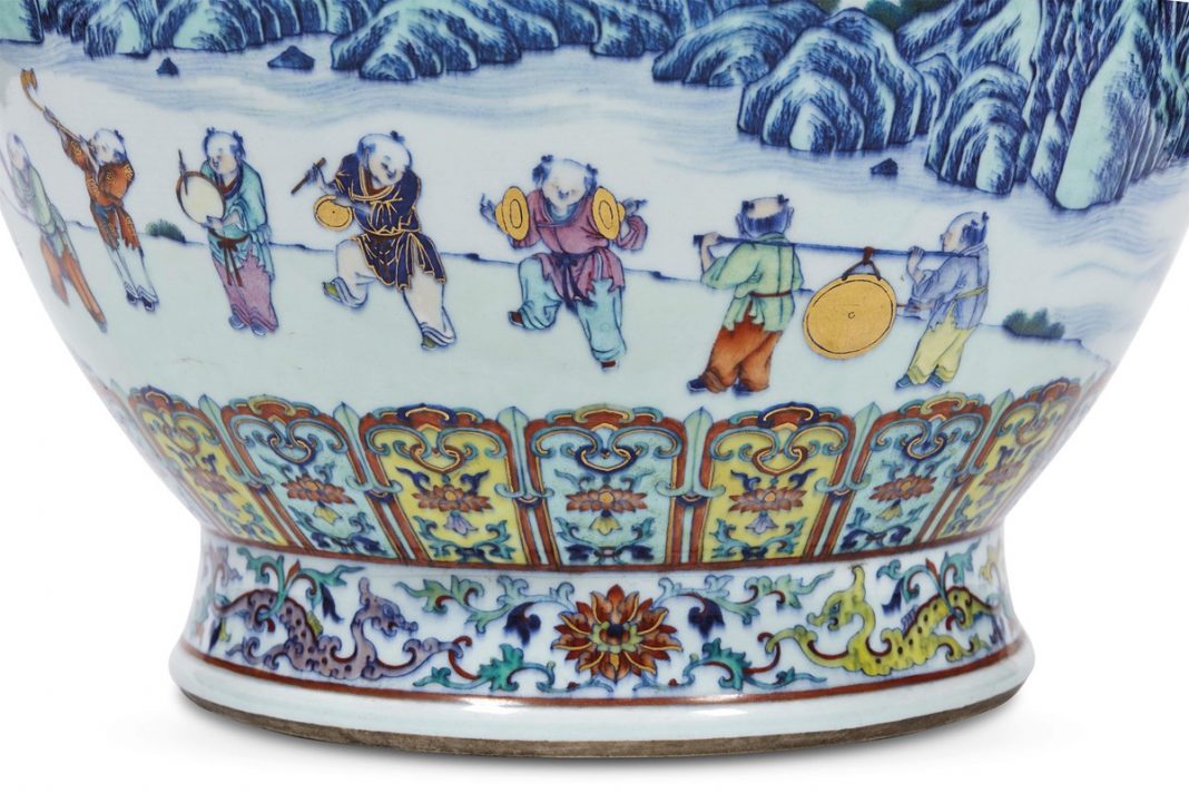 Ad acquistarlo è stato un collezionista straniero collegato al telefono, nuovo proprietario di questo rarissimo esemplare dal collo affusolato, con le anse color rosso a mo’ di drago Kui e l’iconica scena dei “100 ragazzi”. Il significato? Il corteo di bambini in festa tra animali e strumenti musicali rievoca il re Wen della dinastia Zhou (1046 a.C-476 a.C), che – raccontano dalla casa d’aste – aveva 99 figli e ne adottò uno per arrivare a 100. Chiaro simbolo di prosperità, l’immagine caratterizza un topos decorativo già noto ai tempi della dinastia Song (960-1279), poi esploso sotto il regno Qianlong.