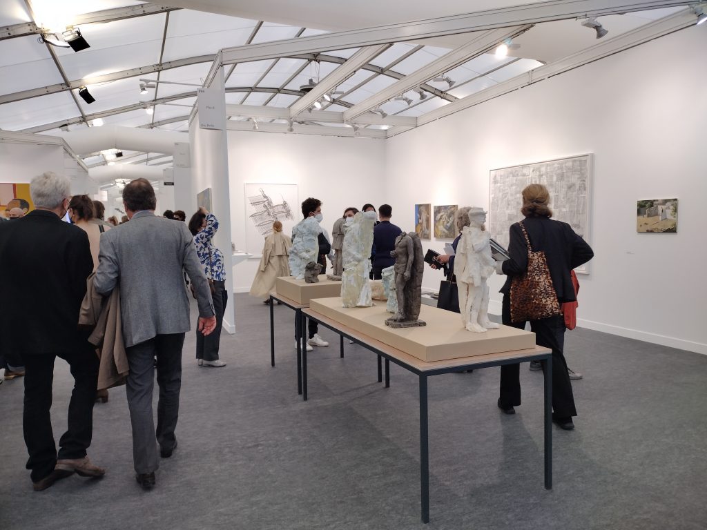 Troviamo anche pittura, video e foto, come presso la spagnola NoguerasBlanchard, con una serie di sei fotografie in bianco e nero (1972/2020, 5/12) di Ana Mendieta, dove l’artista è ritratta durante una performance intorno agli archetipi femminili. La serie è venduta a 6mila euro. Belli i quadri di Françoise Pétrovitch presso la galleria parigina Semiose, artista che ha vinto il Prix de dessin 2021 della Fondazione Daniel et Florence Guerlain. La Jousse Entreprise presenta – dopo una mostra personale presso la galleria – Simon Martin (1992), un giovane artista esposto per la prima volta alla FIAC con una serie di quadri olio su tela di medio e grande formato, tra i 10mila e 24mila, questi sono stati venduti tutti il giorno del vernissage.