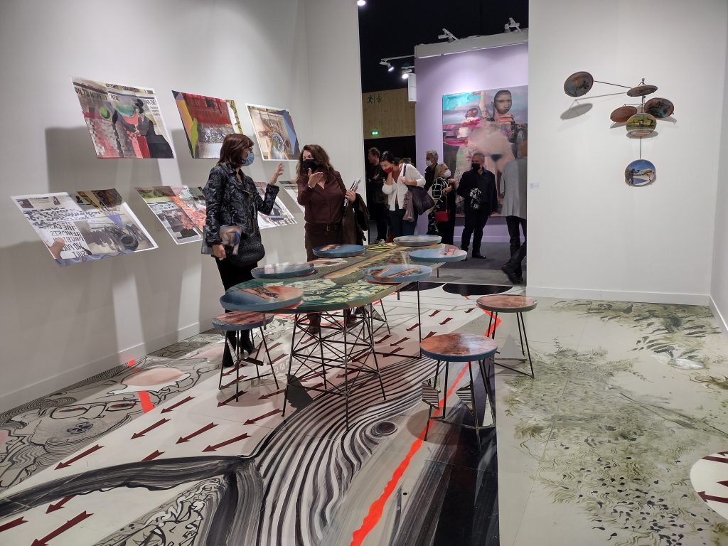 I corridoi del Grand Palais Éphémère, che ha raddoppiato lo spazio in occasione della fiera, sono gremiti di pubblico, e in diversi stand non mancano proposte originali come formati atipici. Vedi gli incredibili diorami in miniatura di Curtis Talwst Santiago della serie Infinity dove, all’interno di minuscole scatole di gioielli antichi e recuperati, si parla di storie di migrazione e colonialism; o la grande installazione presso la galleria parigina In Situ – fabienne leclerc, dove Ramin Haerizadeh, Rokni Haerizadeh e Hesam Rahmanian hanno letteralmente invaso lo spazio con dipinti, video, oggetti e libri, restituendo uno stand coloratissimo e intrigante – una vera immersione nel loro universo creativo. Si può acquistare uno dei lavori a poco più di 11mila euro.