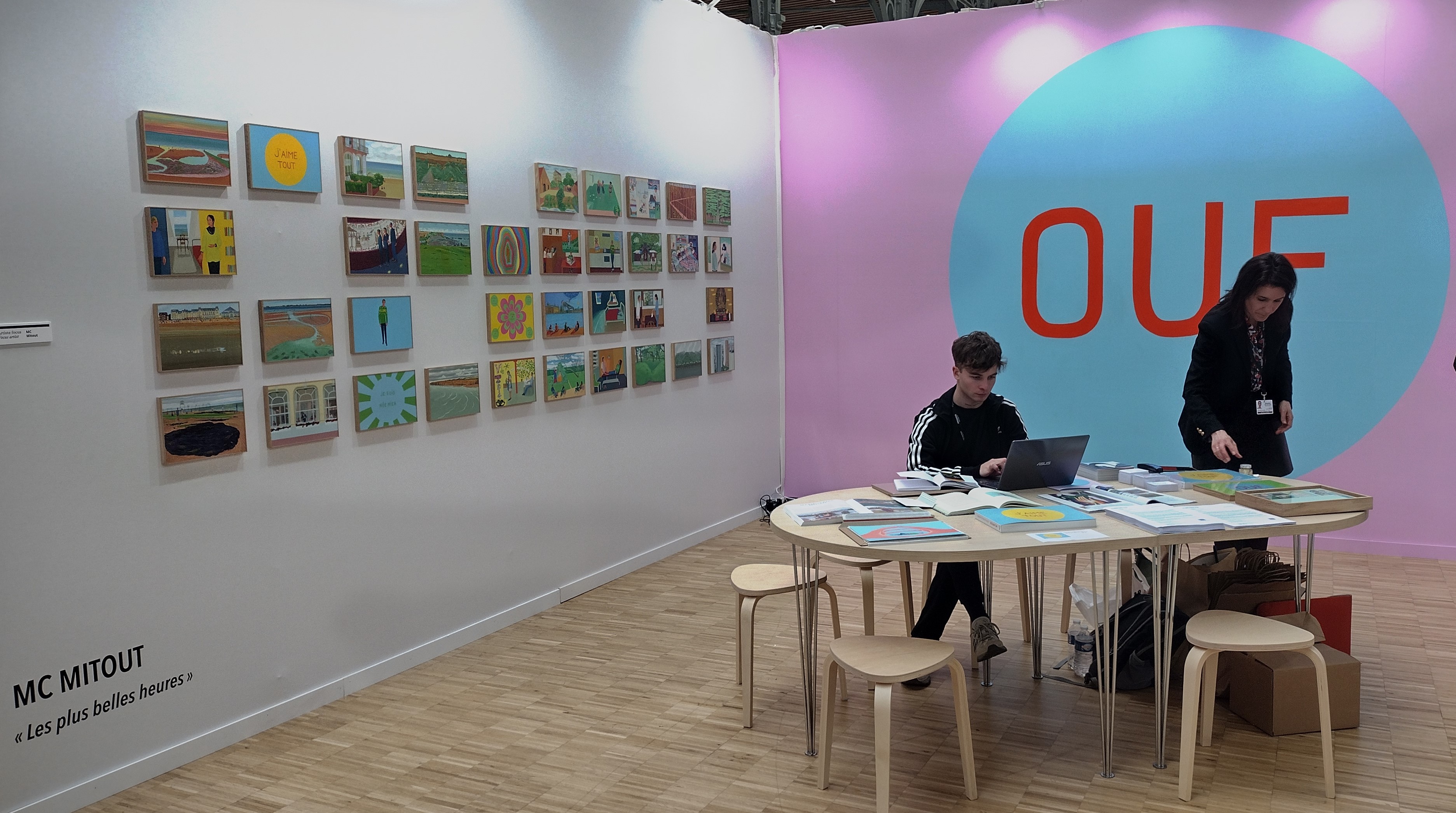 Alcune gallerie propongono fumettisti riconosciuti, si va dal disegno sperimentale all’animazione, troviamo la pioniera canadese Julie Doucet presso la parigina Anne Barrault con opere a 2mila euro e libri grafici sui 60 euro, o Lorenzo Mattotti presso la Martel con lavori venduti a circa 4mila euro. La nota galleria francese Templon, che partecipa per la prima volta, accoglie la nuova serie Connected to the universe di Chiharu Shiota, venduti a 10mila euro ciascuno questi acquerelli vedono l’imperdibile filo rosso, marchio dell’artista giapponese.