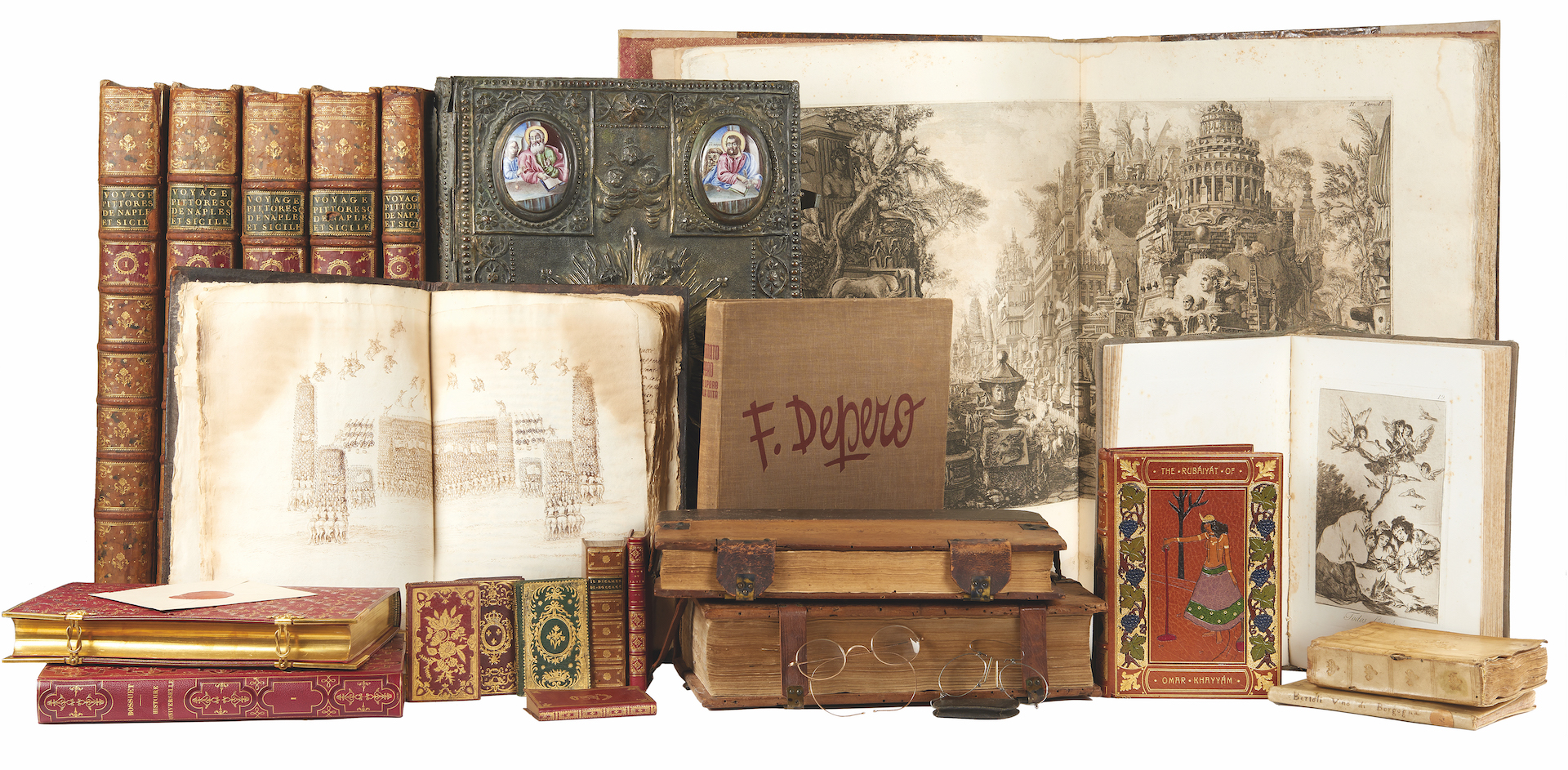 Proseguiamo. Si incontra uno dei primi cataloghi illustrati di antichità romane, animali esotici, fossili e creature mostruose tra gli highlights della maison (stima: € 3000 – 4000), e ancora una grande raccolta di 92 libri illustrati giapponesi, tra gli autori figurano Kunisada, Hiroshige e Hokusai (stima: € 4000 – 6000). I collezionisti? Sconfinati, tanto quanto i generi in rassegna. «Da una fonte così varia mi aspetto un altrettanto vario collezionismo che non segua le mode e che non abbia pretesa di crearne, ma che voglia essere pura espressione di curiosità individuale», dichiarava Crippa a exibart già in fase di selezione (qui la nostra intervista). Detto, fatto. Per gli amanti della fantascienza, Wannenes propone oggi un’alternativa libraria alla saga di Star Wars, la prima edizione di L’anno due mila quattrocento quaranta. Sogno di cui non vi fu l’eguale. Seguito dall’Uomo di ferro che, stampato nel 1798, preannuncia molte delle innovazioni del mondo in cui viviamo (stima: € 300 – 500). Un altro importante lotto dell’incanto: senza dubbio il volume che racchiude Los Caprichos di Goya, le 80 tavole grottesche che mettono a nudo vizi, bassezze, aberrazioni e superstizioni del passato – tutte accompagnate da una sardonica didascalia esplicativa, inclusa la celebre “il sonno della ragione genera mostri” (stima: € 10.000 – 12.000).