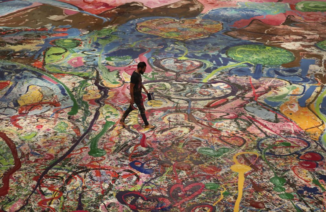 Si tratta di un dipinto di oltre 1500 metri quadrati, che già lo scorso autunno aveva strappato il Guinness World Record per la sua grandezza senza eguali – 4 campi da basket NBA messi insieme, per intenderci. Era stato progettato per essere diviso in 70 parti da vendere singolarmente, e Jafri sperava di ottenere 30 milioni per aiutare i bambini in difficoltà. Come spesso accade, però, la realtà ha superato le aspettative: Andre Abdoune, CEO di Altius Gestion International Holding, non ha voluto saperne di condividere l’opera con altri collezionisti e ha pagato la cifra di 62 milioni per portarlo a casa tutto intero, sbaragliando la concorrenza.