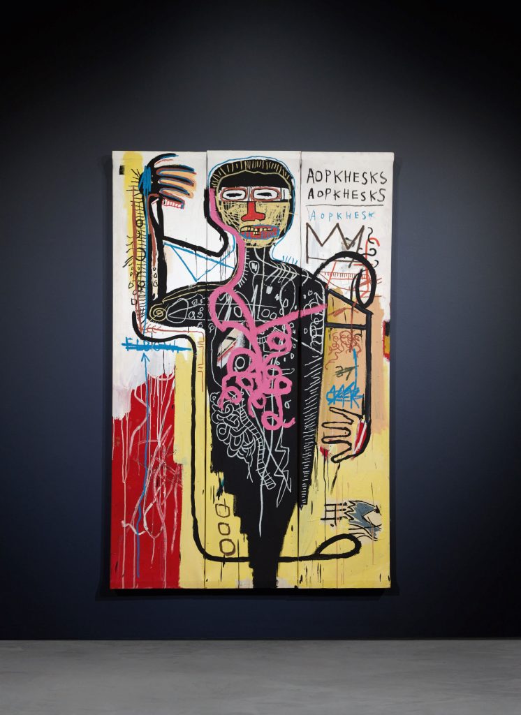 Ora Basquiat attende soltanto l’incoronazione finale, quella del mercato. Al momento, il suo record assoluto è detenuto da Untitled (del 1982, guarda caso), che nel 2018 ha raggiunto la vetta dei $110,5 milioni proprio da Sotheby’s, con una stima sui $60 milioni. Versus Medici, tra l’altro, vanta un curriculum eccezionale, e questo non fa che accrescerne il valore. Appartenne a Stephane Janssen che la acquistò da Larry Gagosian durante una visita allo studio di Basquiat, nel 1982, e poi, nel 1990, passò in un’altra collezione, dove è rimasta fino ad oggi. Non solo: l’opera è stata inserita in alcune tra le principali esposizioni dedicate all’artista, incluse Intuition a Palazzo Fortuny (durante la Biennale di Venezia del 2017), e, più di recente, a Jean-Michel Basquiat: Made in Japan.