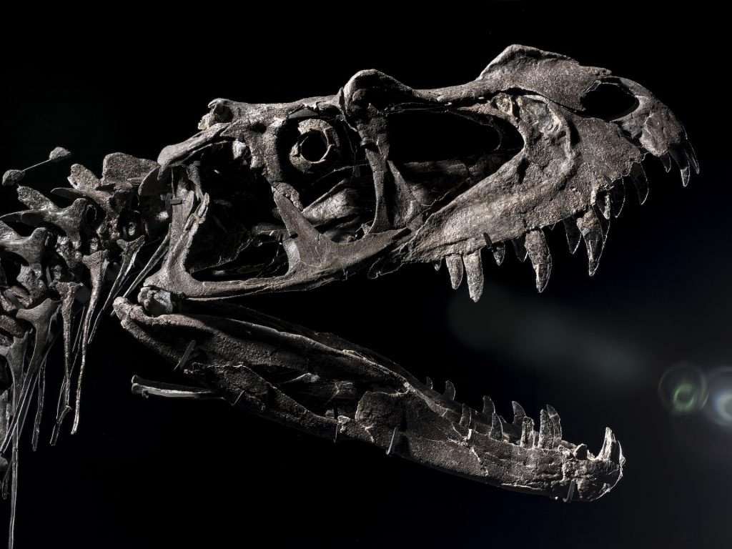 Montata per l’esposizione Sotheby’s, l’intera struttura dell’esemplare viene rivelata per la prima volta al grande pubblico, sorretta da un telaio metallico su misura che ne esalta le dimensioni. Accostato in posa dinamica, il dinosauro è ritratto con le fauci spalancate, a mostrare un’impressionante dentatura.