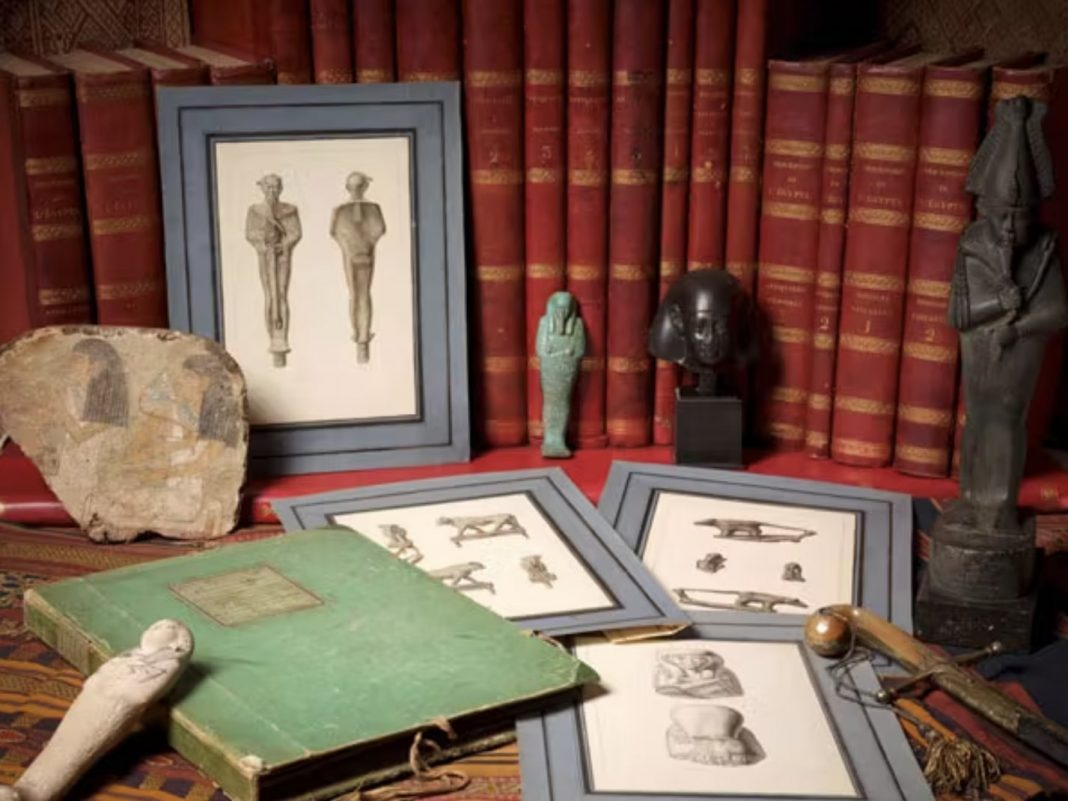Non poteva che aprirsi con un’eccezionale collezione di cimeli napoleonici la selezione, con un’attenzione particolare sulla Campagna d’Egitto e sul suo seguito di studiosi. Artcurial presenterà, tra gli altri pezzi forti, una rara copia della Description de l’Égypte , nonché una quarantina di disegni preparatori per le tavole dell’opera, raffiguranti oggetti archeologici, rilievi geroglifici e studi botanici. «Sebbene i successi militari della campagna, guidata dal giovane generale Bonaparte, fossero limitati, l’ambizione scientifica rappresentò il vero trionfo della spedizione», rivela una nota di Artcurial. «Fin dall’inizio, prese forma la visione di un’opera monumentale, erede diretta dello spirito dell’Illuminismo e della Rivoluzione».