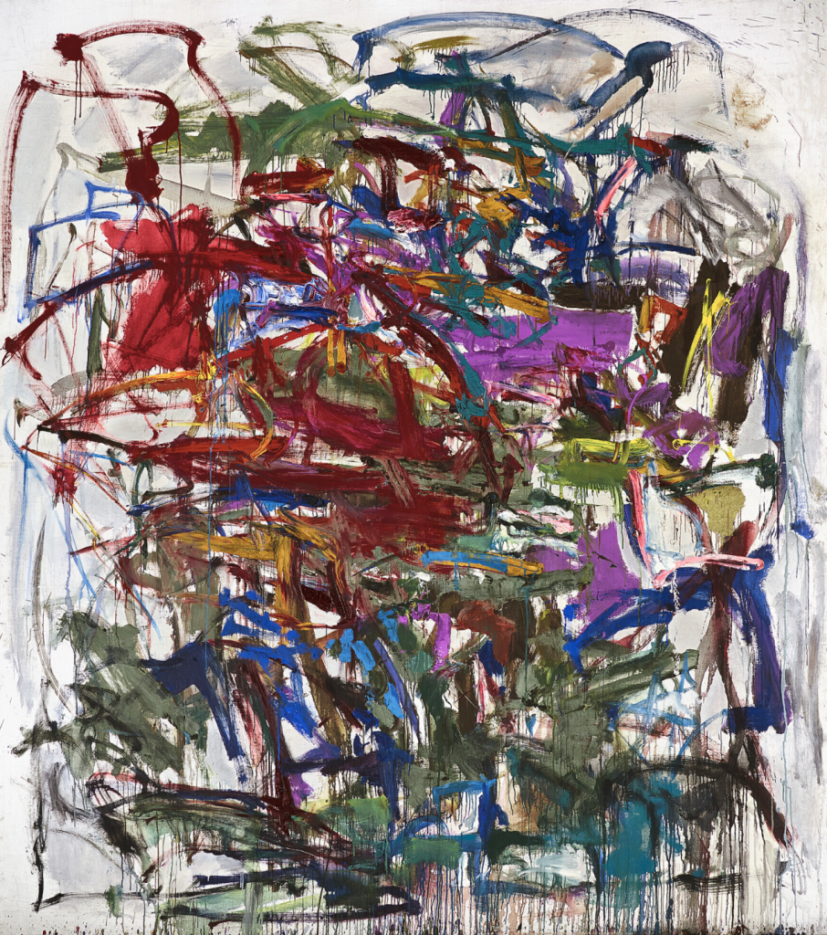 Come possiamo spiegare tutto questo fermento per le opere di Joan Mitchell questo autunno? Oltre ad essere prettamente tele di grandi dimensioni, i dipinti in questione impiegano gli elementi lineari caratteristici di Mitchell noti come whiplash, che infondono alla tela una sensibilità frenetica. Inoltre il rinnovato e più intenso interesse nei confronti della pittrice è dovuto in parte anche alla mostra Monet – Mitchell, tenutasi alla Fondation Louis Vuitton lo scorso anno; il percorso espositivo prevedeva una prima parte costituita da 60 opere di entrambi gli artisti – in cui era possibile ammirare e riscoprire la profonda indagine sul colore incominciata da Monet e inevitabilmente portata avanti da Mitchell – e una seconda sezione interamente dedicata all’artista intitolata Joan Mitchell Rettrospective, organizzata in collaborazione con il San Francisco Museum of Modern Art.