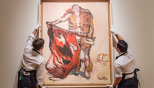 Un gruppo di 17 opere di artisti tedeschi che costituisce un quarto dei lotti nella vendita di Arte Contemporanea. Tra questi spiccano Eisberg di Gerhard Richter, Athanor (stima:1.5-2.5 milioni) di Anselm Kiefer, Die Schmiede di Sigmar Polke (stima: 1-1.5 milioni), un importante dipinto di Martin Kippenberger (stima: 3-4 milioni), al fianco di opere chiave di Wolfgang Tillmans, Albert Oehlen, Thomas Schütte, Günther Förg, Günther Uecker e Michael Krebber. Uno dei pezzi più attesi e che potrebbe segnare un record per l’artista è il grande dipinto di Georg Baselitz, Mit Roter Fahne (Con la bandiera rossa), del 1965, dalla serie Heroes, un dipinto che ha rafforzato la fama dell’artista e lo ha reso una delle voci più provocatorie e interessanti del dopoguerra. L’opera potrebbe raggiungere 8,5 milioni di sterline.