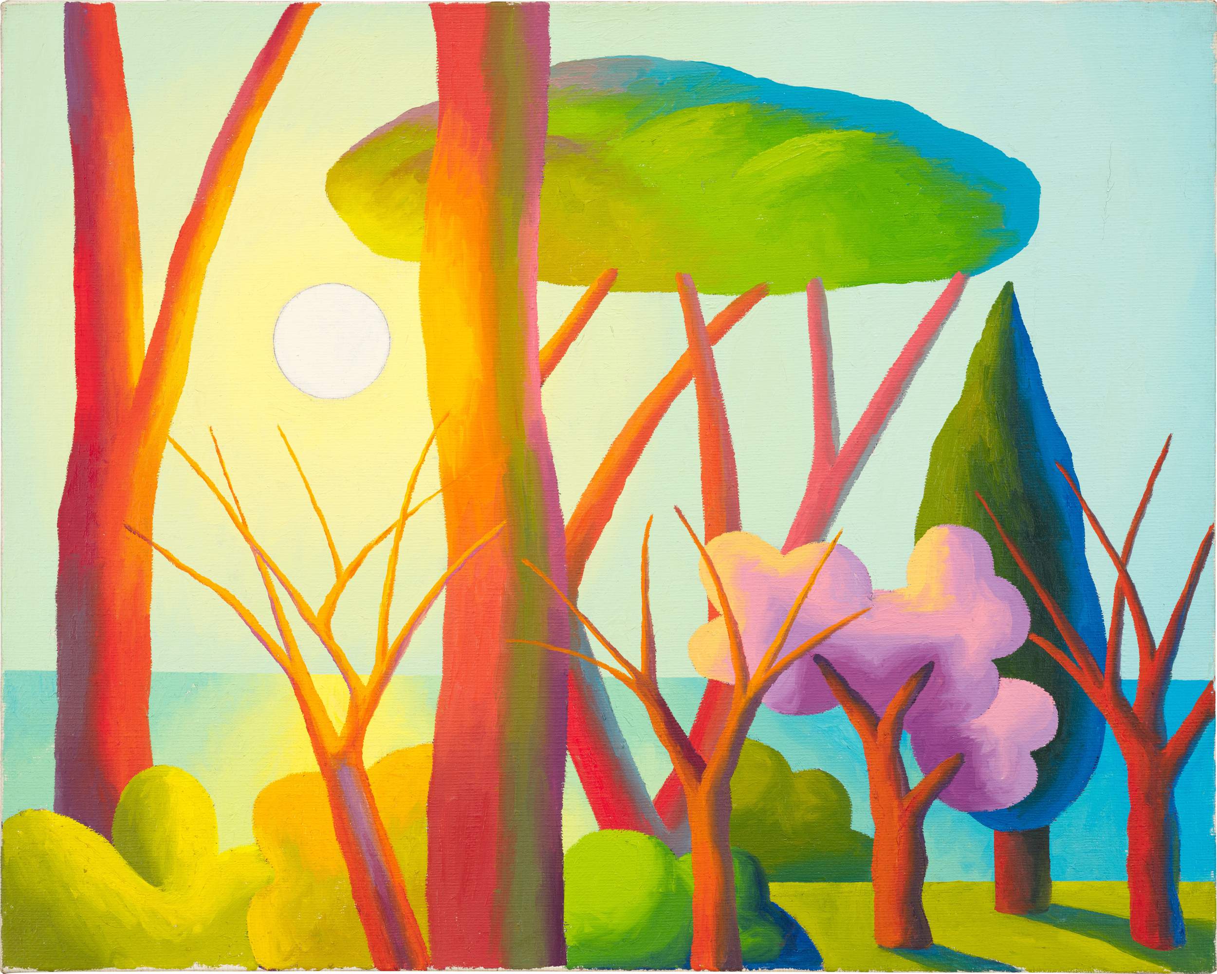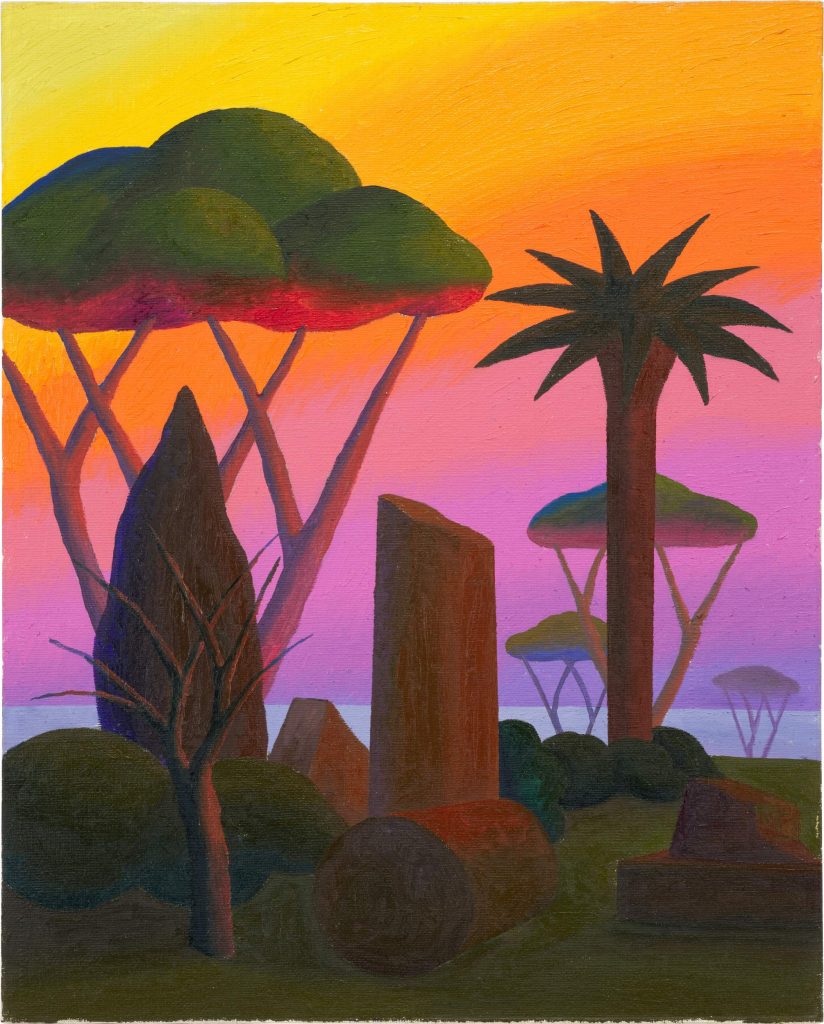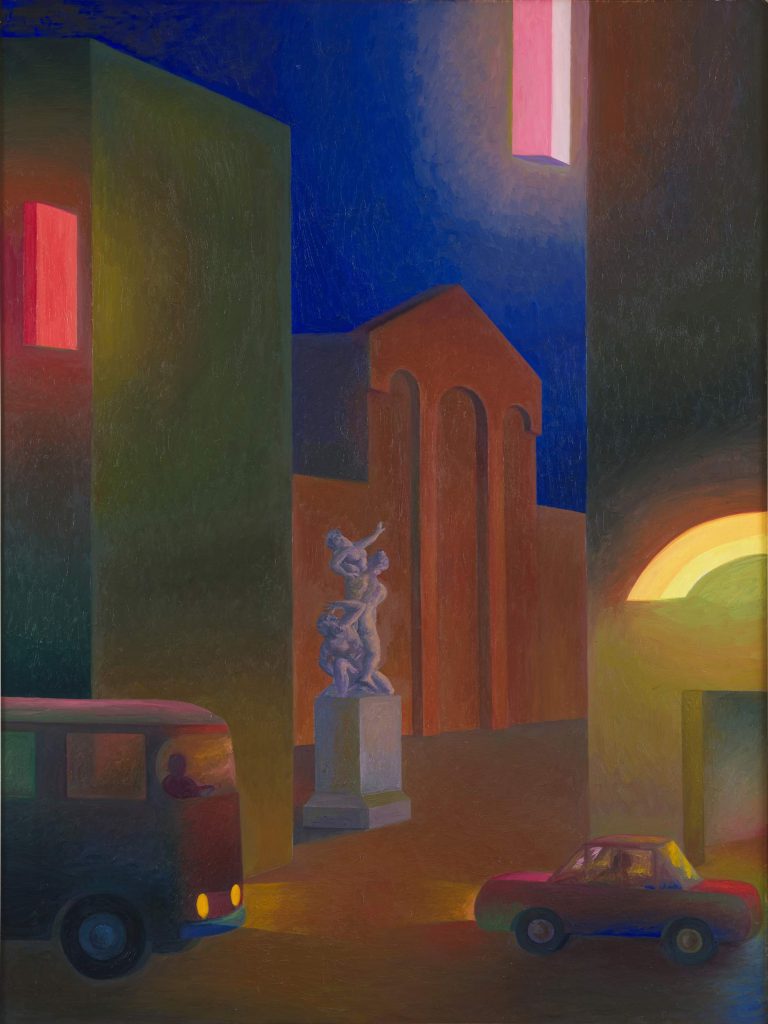 I protagonisti assoluti: i dipinti a tinte accese dell’artista siciliano, dagli anni ’80 in avanti, con le sue valli, i suoi lampioni colorati, le sue città ridotte a figure geometriche. «La pittura senza tempo, colorata e meditativa di Salvo», rivelano dalla maison, «è manifestazione di un dialogo continuo con il mondo classico e la storia. Lo stile di Salvo affascina non solo un pubblico sempre più globale, ma anche colleghi artisti contemporanei, che attingono al suo mondo quasi onirico in cerca di ispirazione».