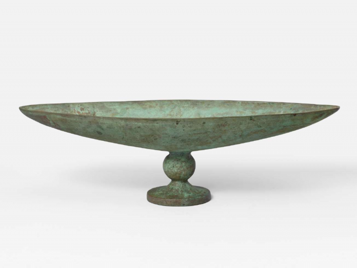Quando Man Ray presentò a Giacometti l’arredatore di interni Jean Michel Franck, l’artista iniziò a diede vita a una produzione di svariati oggetti, lampade e vasi, divenuti iconici. Questa coppa allungata, in una forma pura e una patina verde-marrone, celebra l’amore di Giacometti per l’antico – amore che coltivò fin da giovane, con un viaggio tra roma, Napoli, Paestum e Pompei nel 1921. Sarà presentata da Galerie Jacques Lacoste.