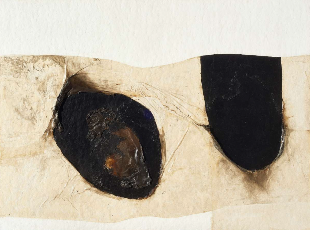 Una delle grandi ferite di Burri, declinata stavolta su plastica. Plastica, d’altronde, è una delle sue serie più iconiche, più acclamate, con la prima esposizione a Roma nel 1962 e poi a Londra e a New York. Il filo rosso: il fuoco come elemento di distruzione, di lacerazione, di trasformazione. Bianco Plastica, in particolare, è un esempio maturo di questa serie, testimone dell’approccio pionieristico di Burri, del suo uso di materiali unici e non convenzionali. Al Tefaf di New York sarà in vendita nello stand di Mazzoleni.