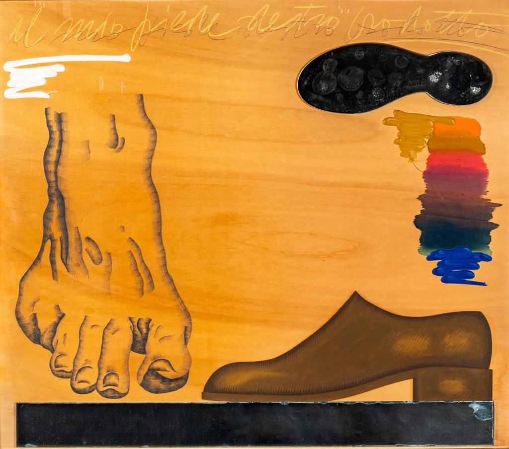 Ecco allora le proposte della maison, tra opere su carta, multipli ed edizioni di libri d’artista. C’è il già citato Andy Warhol – record d’asta: Silver Car Crash, $ 105,4 milioni, per rendere l’idea – presente qui con un iconico Mao (1985) da € 200 – 400. C’è Urs Lüthi, in catalogo con 16 stampe fotografiche dal titolo Don’t ask me if you know that I am too weak to say no (1977), stima € 1.800 – 2.200. E merita una menzione Senza titolo (Negativo – Positivo) di Bruno Munari (1993), una vera architettura di forme-colori offerta per € 1.500 – 2.500. Ancora qualche esemplare: Cinque ovali rossi del 2008 di Turi Simeti (stima: € 1.000 – 2.000), Macchina drogata, documento di processo del 1967 di Vincenzo Agnetti (stima: € 2.000 – 3.000), Sunflower seeds del 2010 di Ai Weiwei (stima: € 100 – 300). Per finire, gli oggetti aggregati, ingranditi e decontestualizzati di Concetto Pozzati: Il mio piede destro prodotto del 1973, in particolare, potrebbe raggiungere fino a € 2.000. Appuntamento da Art-Rite, 4 marzo, h. 17:30. Buon inizio di collezione.