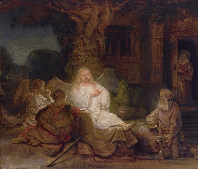 «Rembrandt è conosciuto per le sue scene bibliche», spiegano gli esperti di Sotheby’s, «ma solo 29 degli oltre 300 dipinti da lui eseguiti ritrae episodi dell’Antico Testamento. Quest’opera rivela il momento esatto in cui Abramo, dopo aver generosamente offerto del cibo a tre perfetti sconosciuti, riconosce che due di questi sono angeli, mentre il terzo è il Signore in persona, rappresentato qui dall’angelo che è la principale fonte di luce».