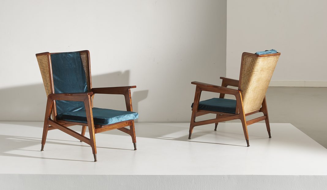 Iniziamo proprio da lui allora, dal maestro dello Spazialismo che si insinua con successo nella storia del Design. Perché se il mobile bar di Osvaldo Borsani, in mogano, ottone, pelle, vetro e specchio, è già di per sé un capolavoro degli anni ’50, la sorpresa è grande quando, al suo interno, si scopre una applique scultorea firmata da Lucio Fontana. La stima: una cifra compresa tra 8.000 e 12.000 euro, tra le punte di diamante del catalogo Design Italiano. E non è da meno la coppia di poltrone di Gio Ponti e Angelo Crippa, realizzata dalle Officine Allestimento e Riparazioni Navi di Genova per le sale del transatlantico Giulio Cesare (stima 15.000 – 20.000 euro), seguita poi dalla lampada modello 5237 di Carlo Scarpa che testimonia, silenziosa, quel contributo eccezionale alla storia della vetreria muranese (stima 4.000 – 6.000 euro).