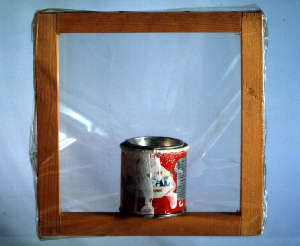 Prima e significativa opera è “Disegno geometrico” (1960), piccola tela su cui è tracciata la squadratura del foglio ad inchiostro, anticipazione di ogni possibile rappresentazione e testimonianza che la ricerca iniziale dell´artista verte sull´analisi del fare artistico, sulle strutture fondamentali della visione. Si passa poi ad altre opere dello stesso periodo dove Paolini individua i mezzi tecnici, le basi materiali della pittura: tela, telaio, barattoli di colori… fino ad arrivare all´identificazione dell´autore con la sua opera: è il caso di “Hi-Fi” (1965) dove la sagoma dell´artista e la tela su cui dipinge, sono interamente ricoperte di smalto nero.