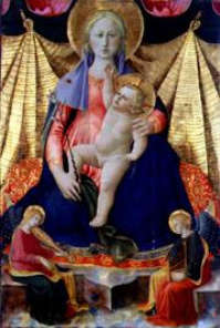 L’opera parmense mostra ancora un impianto medievale, con i personaggi disposti e raffigurati secondo un criterio non proporzionale bensì gerarchico (la Vergine e il Bambino di grandi dimensioni i Santi più piccoli), mentre l’opera torinese presenta un deciso salto qualitativo, una maggiore dimestichezza con i piani prospettici ed una profonda conoscenza delle opere fiamminghe . “Fra’ Angelico aggiunse il fascino della grande bellezza facciale, l’interesse dell’espressione quanto mai intensa, l’attrattiva per il colore più delicato”, da queste intense parole del Berenson appare evidente come questa generazione, di cui l’Angelico fu autentico protagonista, prese come esempio il modello di Masaccio irrorandolo però con una luce ed una delicatezza che, a volte, ricordano il mondo tardo gotico. Naturalmente il registro figurativo di Zanobi Strozzi appare decisamente inferiore rispetto a quello del Beato Angelico, di cui fu strettissimo collaborato di bottega: lo Strozzi appare insicuro nella resa dei personaggi – vedi i due angeli musicanti nella Madonna dell’Umiltà – e spesso anche nel complesso della costruzione scenica, ma appare decisamente efficace nella resa pittorica dei materiali e dei tessuti. Tale peculiarità deriva probabilmente dall’alunnato svolto dall’artista presso il celebre miniatore fiorentino Battista di Biagio Sanguigni. In ogni caso il tipo di produzione di Zanobi Strozzi – o meglio della sezione della bottega dell’Angelico affidata a quest’ultimo – doveva essere numeroso e apprezzato tanto che il Vasari scrisse che “Zanobi fece tavole e quadri per tutta Florenza, per le case de’ cittadini”..jpg)