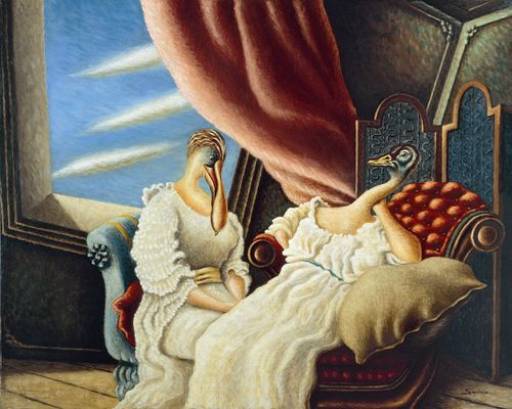 Poi gli occhi si abituano al buio, si riconosce sullo sfondo la voce elegante di Toni Servillo, e si capisce che lo spettatore è invitato a partecipare alla rappresentazione: due eleganti dame lo osservano, una con la testa d’anatra, l’altra di pellicano. È il capolavoro En visite, che apre la mostra di Alberto Savinio (pseudonimo di Andrea Francesco Alberto de Chirico; Atene, 25 agosto 1891 – Roma, 5 maggio 1952) promossa dal Comune di Milano e prodotta da Palazzo Reale con 24 ORE Cultura – GRUPPO 24 ORE, con il sostegno dell’Archivio Savinio di Roma. La retrospettiva punta ad avvicinare il grande pubblico ad un artista di culto ma ancora in secondo piano per molti e per lo stesso mercato dell’arte, che gli preferisce il più noto fratello Giorgio De Chirico. Pittore, scrittore, musicista, drammaturgo, Savinio è un artista totale, alla maniera rinascimentale, capace, però, di giocare con il passato e di anticipare il futuro. Spesso classificato come artista surrealista, movimento di cui condivide temi importanti come il sogno e l’inconscio, Savinio è tuttavia un surrealista eterodosso, come spiega il curatore Vincenzo Trione: “In Savinio, non esiste l’incongruo, ma il fantastico. In lui, non si ricorre ad allucinazioni, né ad abbandoni verso l’irrazionale. Alle evanescenze oniriche egli contrappone una nietzschiana volontà di potenza. Vuole dare forma