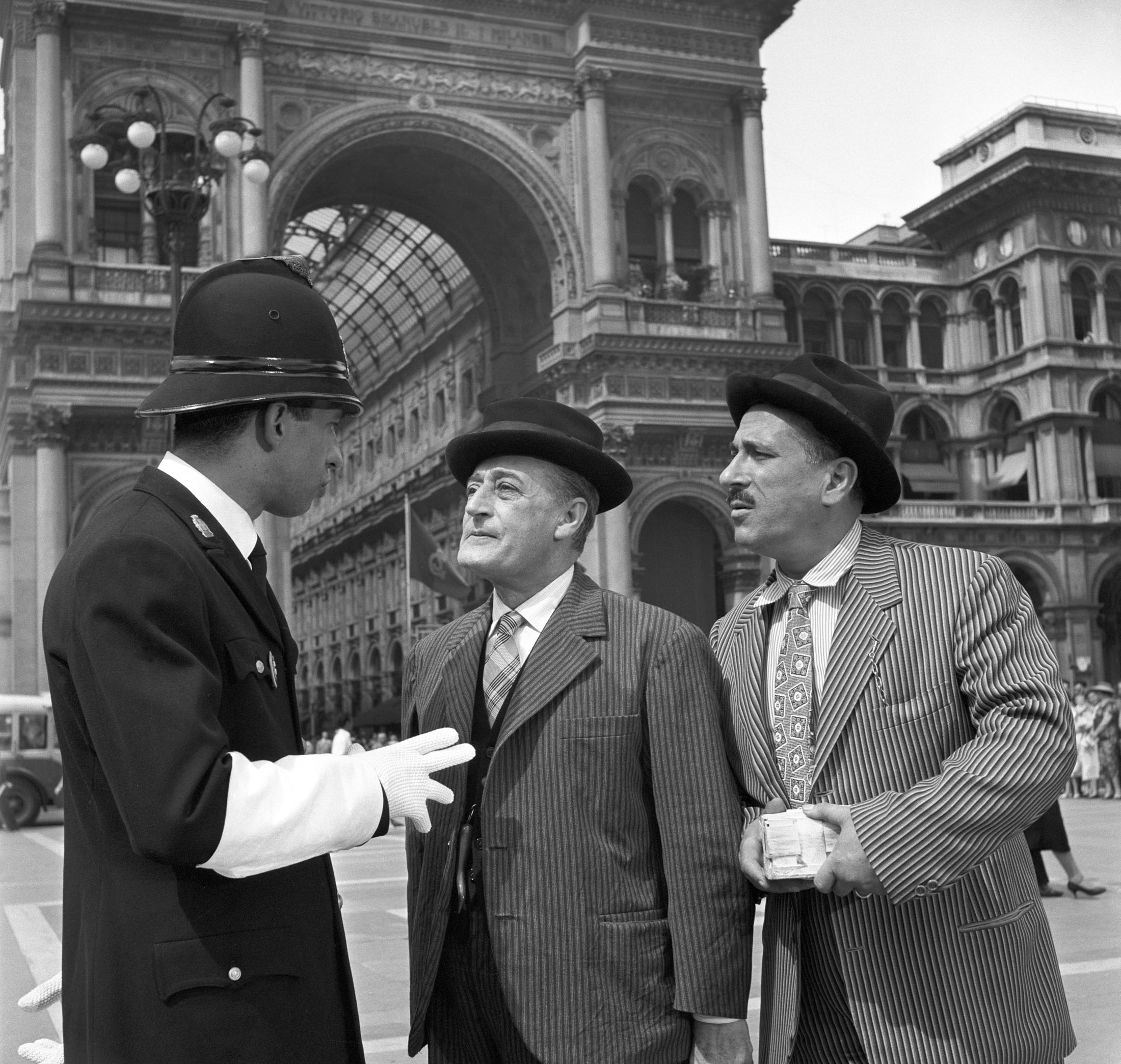 Vittorio Gassman sul set dell’Audace colpo dei soliti ignoti, 1959 di Nanni Loy; Milano, 31/08/1959; ©AF
