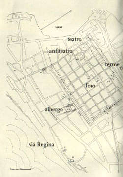 Altro grande edificio, costruito dopo la demolizione di un’ala dello stesso albergo, con colonne in marmo cipollino e pareti in marmo di Musso, è quello che gli studiosi ipotizzano essere stata la sede di una corporazione come quella degli Augustales oppure la famosa biblioteca offerta da Plinio il Giovane ai concittadini.