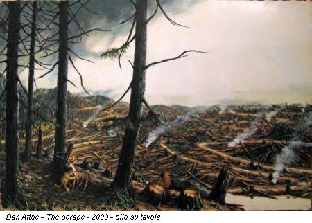 Dan Attoe dipinge una tela al giorno per capire come evolve la sua pittura rigorosamente figurativa. Surrealismo noir e prospettiva aerea sono il cardine della ricerca, dove è il paesaggio a esser protagonista. Sfondo psico-emotivo attraverso il quale esplora la condizione di tensione e angoscia alla base della cultura americana contemporanea. A tematiche ricorrenti come morte, violenza, sesso e religione coniuga recenti avvenimenti autobiografici e non, attraverso cinici aforismi che attirano lo spettatore all’interno dei suoi giganteschi paesaggi, minuziosamente dettagliati.