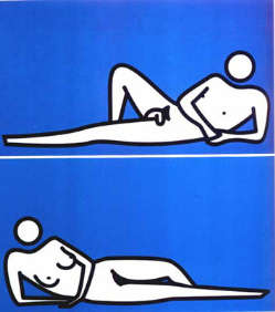 Orientarsi nella ricchezza e molteplicità delle proposte artistiche non è affatto facile, interpretare i diversi livelli di lettura, che ciascuna opera mette in gioco, richiede del tempo e forse più di una visita ai luoghi di una mostra, che presenta i caratteri dell’evento. La mostra infatti costituisce l’importante incipit d’un progetto teso alla creazione del Museo del Presente alla Bovisa, tanto che le opere del PAC, che venti artisti sono stati chiamati a realizzare per quest’occasione, costituiscono il primo nucleo del futuro museo, non solo, ma la mostra intende essere motore di forze sinergiche che colleghino la città e le gallerie private alle istituzioni. Il White Bus, l’autobus bianco del polacco Althamer e i fuochi artificiali dell’inglese Cornelia Parker, ridisegnano e connotano “artisticamente” gli spazi urbani, mentre le gallerie propongono percorsi conoscitivi al proprio interno per i primi tempi della mostra. Julian Opie (Gran Bretagna), Male nude, 2000, vinile su alluminio, Courtesy Lisson Gallery, London. Female nude, 2000, vinile su alluminio, Courtesy Lisson Gallery, London