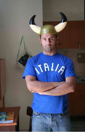 Guardando l’opera con un occhio più distaccato, ritornano in Tagadà alcuni elementi tipici della poetica dell’artista: gli uomini-tavolo, il senso del gioco e del precario, soprattutto la capacità di creare strutture iconiche che raccontano storie in qualche modo legate al vissuto collettivo. Ritornano i disegni di animali della performance alla Stecca degli artigiani del 2003, il tessuto a quadretti rossi de La vertigine della signora Emilia (1992), l’imballaggio di Via Col di Lana 8 (2005). Ma se nel lavoro di due anni fa venivano portate per la città, in sacra processione, sedie ricoperte di scatole, cartoline, radio, qui il vissuto collettivo è più prossimo a una mondana festa di paese dove il tricolore, affiancato da una pezza di tessuto a quadretti, si srotola in una lunghissima e gaudente tavolata.