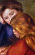 Claude Monet esprimeva così la vera essenza della sua poetica figurativa: Cogliere l’attimo fuggente o almeno la sensazione che lascia, è già sufficientemente difficile quando il gioco di luce e di colore si concentra su un punto fisso, ma l’acqua essendo un soggetto così mobile e in continuo mutamento è un vero problema. Un uomo può dedicare l’intera vita ad un’opera simile. Dunque per Monet, e quindi di riflesso per gli impressionisti, il vero scopo della pittura è saper cogliere l’istantanea impressione di toni e colori che la luce provoca quando colpisce l’oggetto. Questa concezione squisitamente cromatica, che rimanda alla pittura tonale veneziana del Cinquecento, ribalta completamente la rigida impostazione accademica che, viceversa, vedeva nel disegno puro – per intenderci la linea di contorno – la reale prerogativa di un vero artista. Renoir accoglie immediatamente la novità impressionista, anzi è in prima fila quando, nel 1874, viene inaugurata, senza alcun successo, la prima storica mostra del movimento: la sua suadente visione del reale, la grande capacità tecnica e, persino, il suo amore per la pittura rinascimentale italiana si fondono perfettamente nella grandiosa tavolozza cromatica dell’impressionismo. Un’opera come il Moulin de la Galette, ora la Museo d’Orsay, non è solo uno straordinario inno alla vita e al divertimento ma anche un’autentica sinfonia di colori che annullano lo spazio prospettico rivoluzionando totalmente la scena pittorica francese della seconda metà dell’Ottocento. E’ possibile rivivere questa eccezionale rivoluzione visitando le sale della Fondazione Mazzotta dove sono esposti capolavori non solo di Renoir ma anche di Courbet, Monet, Manet, Sisley e Delacroix. Osservando le tele esposte notiamo quanto limitativo sia la semplice equazione Renoir=Impressionismo: in realtà riscopriamo un artista eclettico, versatile, capace, caso pressoché unico tra gli impressionisti, di passare con disinvoltura assoluta dal ritratto al paesaggio. Le frementi chiazze di colore che animano la Danse a Bougival, autentico capolavoro del 1883, le ritroviamo anche nei bianchi del pizzo della Femme au Jabot Blanc, ritratto del 1880, così come nel bellissimo paesaggio Jeune Fille sur le Sentier dell’83. La forza dei colori puri “gettati” direttamente sulla tela con piccole e veloci pennellate rendono profondamente viva la pittura riuscendo a trasmettere la sensazione che il pittore abbia “catturato” la luce. Questa sensazione emerge anche dallo spettacolare paesaggio di Alfred Sisley, Champs de Coqulicots del 1875, testimonianza di come, almeno inizialmente, i giovani artisti del movimento avessero il medesimo obiettivo figurativo. Ma Renoir rimarrà sempre profondamente legato alla grande pittura italiana, Raffaello in particolare, tanto che, dopo i viaggi in Italia dei primi anni