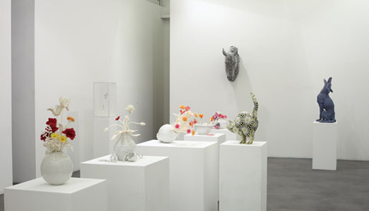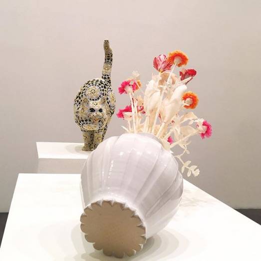 Joana Vasconcelos realizza sculture di animali in ceramica ma la particolarità si identifica nel volerle rivestire con centrini fatti a crochet, tecnica proveniente dalla cultura popolare portoghese; si parte dalla storia per entrare in comunicazione con il mondo odierno.