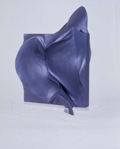 I materiali -tela estroflessa, carta, plexiglas, pvc, legno, cristallo, marmo, gesso, resina- acquistano una forte connotazione pittorica, grazie anche ai colori che ricordano i campi monocromatici dei quadri. L’astrazione di forme crea una costruzione nello spazio, tra pieghe, inarcature, protuberanze e rientranze.