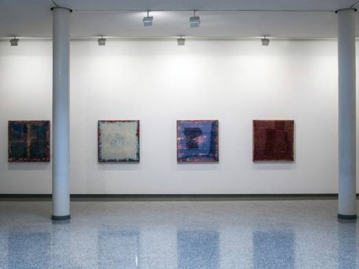 L’artista sono anni che compie studi su questo materiale diremmo alternativo alla pittura, un intenso lavoro di ricerca sperimentale che si fonda sullo studio della luce, e per questo sceglie la resina come materia prima delle sue opere. Questo materiale lo lavora anche con l’ausilio della fiamma ossidrica. Ottiene così opere più simili ad oggetti con una loro vibrazione interna, i colori sembrano liquidi e questi puntini che attraversano il pigmento di fondo sembrano quasi nuotarci dentro e c’è come un movimento ondeggiante che attraversa delicatamente ogni lavoro.