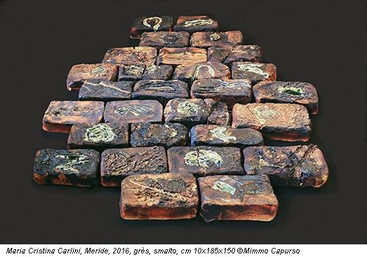 Sono le opere in ceramica situate tra il piano terra e il primo piano della galleria a colpire di più: il gres si espande in diverse forme, mostrandosi come se fosse ferro o rame; lo smalto dell’opera Meride si vetrifica al di sopra delle superfici della terra, ancora primordiale.