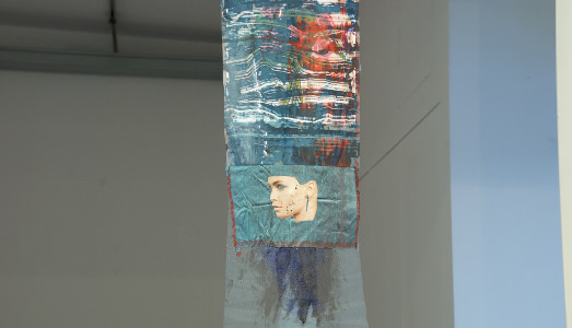Seguendo la tecnica inaugurata dalla Nouvelle Vague francese, che consiste proprio nel sezionare un’inquadratura lasciando intatte le parti iniziali e finali, facendo saltare la sequenza centrale, ecco che le creature a metà tra pittura e installazione di Dehghan assumono forme di possibilità interpretative che superano la bidimensionalità delle pareti della galleria e che in questo caso sono mostrate su supporti di cellophane, rete e altri materiali trasparenti, sorretti da mollette e fili di nylon, quasi troppo sottili per sostenere colore, “accessori”, e il peso dello sguardo.