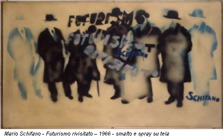 Mentre si sviluppano altre tematiche e influenze, il 1966 è soprattutto l’anno del Futurismo rivisitato. Dalla celebre fotografia che immortalava il gruppo, Schifano ne trae una versione spray, con l’utilizzo di quelle sagome che ancora oggi vengono usate da tanti street artists. Una parentesi per quello che viene Chiamato K. Malevič (1965), un lavoro articolato in 7 pannelli, in forza alla collezione Sperone, che unisce con un risultato devastante l’impiego di spray e perspex. Poi l’interesse per video e fotografia, come rammenta Un paesaggio dedicato a Jean-Luc Godard (bianco e nero) (1967), collage che “inquadra” una stampa fotografica al negativo con una miriade di stelle dorate e argentate. Perché il ’67 è pure l’anno di Tuttestelle, ennesima manìa dell’artista che, nell’esaurire o, meglio, sfinendo ogni ciclo, viaggia con un bagaglio leggero, portando con sé l’essenziale di ciò che si è sedimentato in ogni tappa del suo frenetico percorso.