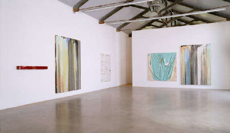 Rudolf Stingel (Merano 1956. Vive e lavora a New York) ha allestito la prima sala coniugando intervento ambientale e pittura. In maniera simile a quanto era avvenuto nella personale al Mart nel 2001, il pavimento è ricoperto da una superficie riflettente sulla quale il visitatore ha qualche remora a poggiare i piedi. Superato il primo imbarazzo, si deambula in un luogo che guadagna in metratura. Alle pareti, cinque tele di grandi dimensioni presentano campiture dorate e barocche sulle quali sono applicate damascature in tulle di foggia arabeggiante. Lo scarto fra la dimensione installativa e quella pittorica è netta e l’effetto non pare quello di un coinvolgimento dello spettatore, piuttosto il contrario. In sintesi, una dimensione sospesa e disagevole.